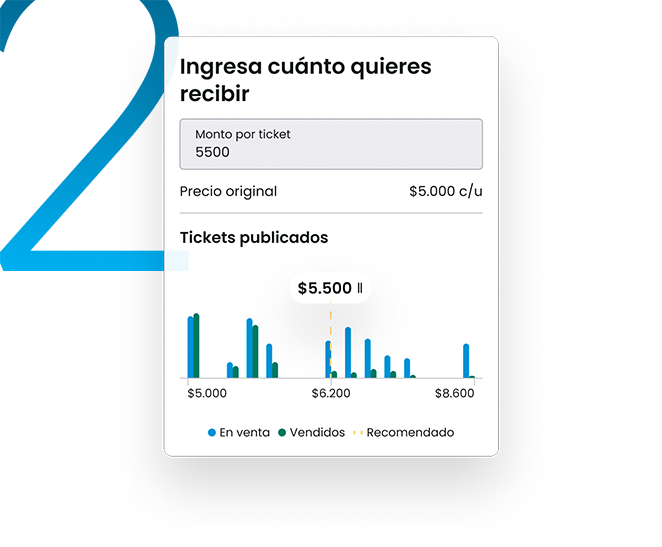 Define el precio de ventaIndica cuánto quieres recibir por tus boletos, el medio de pago donde recibirás el dinero y publícalos a la venta ¡Podrás modificar estos datos en cualquier momento!